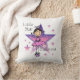 Little Star Ballerina aux cheveux brunes et aux chaussons tutu rose et ballerine sur un arrière - plan étoilé violet et rose.