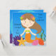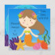 Vous pouvez facilement customiser nos invitations d'anniversaire Brunette Mermaid avant de commander avec le nom de votre enfant et les détails de votre fête ! Une mignonne sirène brune, une étoile de mer, des algues et une eau bleu vif font de ce joli invitation à thème de sirène un succès !