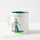 Père et fille se tiennent la main. La chemise de l'homme lisait "papa" et la robe de la petite fille disait "moi". Titre ci-dessus parent et enfant dit "Fille de papa" mais vous pouvez le changer pour ajouter des noms personnalisés! Cette image de famille de parents et d'enfants est brune. L'image est aussi en couleur blonde ou en dessin sans couleur. Faites une tasse cadeau de Fête des pères personnalisée avec votre propre texte et images en utilisant le bouton "Customiser"!