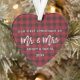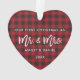 Script de brosse moderne, Plaid de Buffalo rouge, Notre premier Noël en tant que M. et Mme Heart Ornament