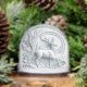 This elegant winter snow globe presents a striking design of a deer in dynamic motion, featuring embossed texture and layered paper-cut styling. Artistic flourishes frame the deer, enhancing the scene's rhythm and inviting personal interpretation. This snow globe serves as a thoughtful gift for nature enthusiasts or those who appreciate unique design and creative expression. Art by Susang6. AI-assisted design