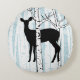 Ce joli coussin rond design de cerfs est parfait pour tous ceux qui aiment les cerfs, les animaux, la faune et les dessins amusants! Dispose d'une forêt de bouleau de chaque côté avec le ciel bleu entre le bouleau blanc, le devant coussin a une silhouette noire doe, le dos a une silhouette noire buck! Ce coussin de cerfs est parfait pour le salon, la tanière, la chambre familiale, le cabine de famille sur le lac, et bien sûr il fait un grand cadeau.