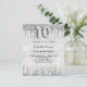Une invitation moderne, élégante et glamour pour la fête du 10e anniversaire d'une fille. Un arrière - plan faux argenté, décoré de poussière de parties scintillant. Personnalisez et ajoutez votre nom et les détails de votre fête. Le numéro 10 est écrit avec une police de style ballon, un script.