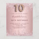 Une invitation moderne, élégante et glamour pour la fête du 10e anniversaire d'une fille. Un rose poussiéreux, un faux arrière - plan rose à l'apparence métallique avec fausse goutte de parties scintillant, la peinture goutte à goutte. Le nom est écrit avec un rose moderne de couleur or foncé à la main écriture style. Personnalisez et ajoutez les détails de votre fête. Le numéro 10 est écrit avec une police de style ballon, un script.