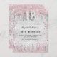 Une invitation moderne, élégante et glamour pour la fête du 18e anniversaire d'une fille. Un arrière - plan faux argenté, décoré de poussière de parties scintillant rose et faux argent. Personnalisez et ajoutez votre nom et les détails de votre fête. Le numéro 18 est écrit avec une police de style ballon, script.