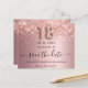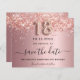Une petite fille et tendance Enregistrer la carte Date pour une fête de 18e anniversaire. Arrière - plan de dégradé rose vif décoré de poussière de parties scintillant rose. Personnalisez et ajoutez une date et un nom/texte. Le texte : Save the Date est écrit avec un grand script de style à la main tendance avec des swashes. Numéro 18 avec une police de style ballon.