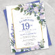 Honorer une femme spéciale avec cette invitation élégante et féminine Budget 19e anniversaire Surprise Party. Surprise et 19ème sont écrits en gros bleu. Célébration d'anniversaire suit. Le nom de l'invité honoré est également en lettres majuscules bleues. Les détails de la fête d'anniversaire sont entourés d'un cadre doré chic. Les fleurs bleues et les roses blanches sont nichées dans des feuilles verts.