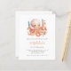 Cette mignonne invitation à la fête de premier anniversaire comporte une pieuvre orange aquarelle entourée d'algues et de minuscules poissons, au-dessus des mots "s'il vous plaît rejoignez-nous un tiers de la mer pour la première fête d'anniversaire de [nom] !" en caractères gris fusain italique. Personnalisez-le avec le nom de votre enfant en lettres peintes en orange, avec les détails en caractères gris sans serif sur un arrière - plan blanc. Idéal pour une fête d'anniversaire sur le thème de la sous-marine.
