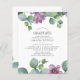 Une invitation de fête de fin d'études moderne et élégante de la promotion 2022 avec un feuillage botanique d'eucalyptus et des succulentes en aquarelle verte et violette. Ce design tendance est parfait pour annoncer votre fête de remise de diplômes et inviter vos invités.