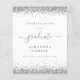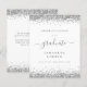 Budget 2024 Graduation Silver Parties scintillant Faire-part. Un prix économique PETIT 4,5 po x 5,6 po alternatif. Disponible dans un STOCK CARTE SEMI GLOSS 110 lb qui est l'option par défaut (recommandé pour les invitations, similaire à l'épaisseur d'une carte postale), OU un STOCK PAPIER THINNER SATIN FINISH 80 lb (idéal pour les boîtiers). Les bordures de parties scintillant en faux style sont en haut et en bas des deux côtés. Le diplômé est dans un script élégant avec des swashes. Personnalisez facilement le texte à vos propres besoins, y compris le ingo à l'envers.