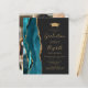 Cette invitation branchée à la fête de graduation 2025 présente une image aquarelle d'une géode d'agate dans les tons turquoise et turquoise, avec des reflets d'or. Le mot "Graduation" et le prénom du diplômé apparaissent dans un élégant script d'écriture couleur or sur un arrière - plan non noir, ainsi que dans un casquette de carton de mortier couleur or et les détails de la fête dans les polices sans serif et italique. Remplacez facilement l'image de l'échantillon au dos par une photo verticale du diplômé.