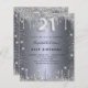 Une invitation moderne, élégante et glamour pour une fête de 21e anniversaire. Un arrière - plan faux argenté, décoré de poussière de parties scintillant. Personnalisez et ajoutez votre nom et les détails de votre fête. Le numéro 21 est écrit avec une police de style ballon, script.