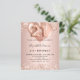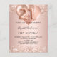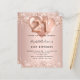Pour un 21ème anniversaire élégant. Un arrière - plan rose à l'apparence métallique. Décoré d'or rose, de faux glitte rose, de mousseux et de ballons. Personnalisez et ajoutez un nom, ainsi que les détails du parti. Le nom est écrit avec un script de style écrit à la main, numéro 21 avec des polices de style ballon.