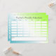 Ce modèle horaire hebdomadaire abordable de 2 en 1 est divisé en 6 rangées et 6 colonnes (d'abord TIME, suivi de jours de la semaine MON à FRI), et une grande forme rectangulaire pour les notes supplémentaires ci-dessous sur les deux côtés. Un simple arrière - plan moderne en dégradé bleu, blanc et vert en fait un calendrier parfait et abordable pour les étudiants de tous âges et de tous les genres. Personnalisez-le avec votre propre nom ou titre sur l'avant et l'arrière.