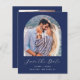 Cette simple et minimaliste carte Save the Date présente une arche photo boho au-dessus des mots "Save the Date" dans un élégant script d'écriture manuscrite blanche, suivi des noms du couple, date mariage et ville en sans serif police sur un arrière - plan bleu marine. Ajoutez une photo horizontale et un message plus détaillé avec des informations supplémentaires au dos.