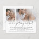 Une alternative BUDGETAIRE offrant un bon rapport qualité-prix dans un format plus petit de 4,5 x 5,6 pouces, semi-brillant, 110 livres, d'une épaisseur similaire à celle d'une carte postale (mais ne convient pas comme carte postale). VEUILLEZ NOTER qu'il y a une invitation par feuille. Budget 2 Invitation de mariage Photo QR Code Getting Hitched. Élégance moderne et informelle pour inviter vos invités à votre mariage. Remplacez simplement les deux exemples de photos par vos préférées. Un calque de dégradé est superposé à vos images pour qu'elles s'estompent vers le bas et We're Getting Hitched, dans un style d'écriture élégant, est superposé par-dessus. Personnalisez facilement le reste du texte. L'ajout de votre code QR vers votre site web de mariage au verso fait de ceci une option pratique pour que vos invités répondent et voient tous les détails sans avoir besoin de cartes de réponse et de détails séparées. Vous pouvez créer des codes