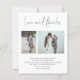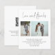 Un rapport qualité-prix BUDGET alternative sur une taille plus petite 4,5 x 5,6" semi-brillant poids 110lbs, qui est d'une épaisseur similaire à une carte postale (cependant ne convient pas à l'utilisation comme carte postale.) VEUILLEZ NOTER qu'il y a UN par feuille. Budget 2 Photo QR Code Mariage Love Thanks. Style minimaliste informel. Remplacez simplement les deux exemples de photos par vos propres favoris. Love and Thanks est dans un élégant script de style manuscrit, et facilement personnaliser le reste du texte. Ajoutez votre code QR à votre galerie de photos mariages au dos de cette page, ce qui en fait une occasion pratique de faire savoir à vos utilisateurs comment visualiser vos photos. Vous pouvez créer des codes QR gratuitement en ligne. Il suffit de chercher "créateur de code QR" et beaucoup d'options viennent créer gratuitement.
