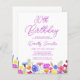 Une jolie frontière fleur sauvage décore le fond de cette invitation de fête du 30e anniversaire adulte. Les fleurs violettes, bleues, jaunes et oranges créent un design coloré et heureux pour célébrer cet anniversaire marquant. La calligraphie violette moderne et simple ajoute une touche tendance pour la garder fraîche. Le flux de lettrage ouvert et insouciant se coordonne parfaitement avec les marguerites et les papillons. Cette invitation de 30e anniversaire donnera le ton parfait, lorsque vos invités le recevront. Un choix enchanteur pour une fête d'anniversaire de printemps ou d'été. Cet article fait partie de la collection de Fleurs sauvages de violet. Utilisez-le pour créer facilement la suite d'invitation parfaite de 30e anniversaire et le thème de fête.