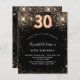 Une invitation moderne, élégante et glamour pour une fête de 30e anniversaire. Un arrière - plan noir décoré de faux parties scintillant. Le nom est écrit avec un script de style à la main de couleur dorée moderne. Personnalisez et ajoutez les détails de votre fête. Le numéro 30 est écrit avec une police de style ballon, script.