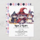 Joli Trick ou Treat Invitation pour toute la famille avec les 3 petites sorcières de chat les plus mignonnes avec leurs petits casquettes et capes illustration. Vous pouvez personnaliser cette invitation avec vos détails.