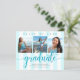 Annoncez au monde que votre groupe favori a atteint son jalon avec cette invitation à faire-part budget unique, simple, moderne et personnalisée. Scénario de calligraphie de parties scintillant bleu turquoise, élégant et brillant, et typographie sans serif grise superposent un arrière - plan rayé bleu turquoise clair et blanc. Ajoutez trois photos de votre choix et personnalisez le texte personnalisé avec le nom de votre diplômé, le nom de l’école, l’année de cours et la date de fin d’études. Au verso, ajoutez votre note personnelle, la prochaine école où ils vont, les renseignements sur la fête, etc. Garanti d'ajouter du plaisir élégant à leur occasion spéciale! Il suffit de remplacer les trois exemples de photos par ceux qui vous appartiennent, de taper les informations de votre groupe, de customiser le message à l’arrière, et de personnaliser facilement cette invitation de faire-part de graduation budgétaire. S'il vous plaît, envoyez-moi un message avec toute question ou demande.