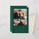 Cette simple et minimaliste carte Save the Date comporte un collage de 3 photos, avec une photo horizontale en haut et deux photos carrés ci-dessous. Les mots "Save the Date" apparaissent dans un élégant script d'écriture dorée, suivi des noms du couple, date mariage et ville en sans serif police sur un arrière - plan vert émeraude. Ajoutez un message plus détaillé avec des informations supplémentaires sur le dos.