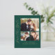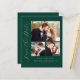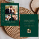Cette simple et minimaliste carte Save the Date comporte un collage de 3 photos, avec une photo horizontale en haut et deux photos carrés ci-dessous. Les mots "Save the Date" s'affichent verticalement vers le haut de la marge gauche dans un élégant script d'écriture manuscrite de couleur or. Les noms du couple, la date du mariage et la ville apparaissent sous le collage photo en sans serif font sur un arrière - plan vert émeraude. Ajoutez un message plus détaillé avec des informations supplémentaires sur le dos, ainsi qu'un code QR pour aider vos invités à visiter votre site mariage.