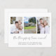 BUDGET 3 Photos Joyeux Noël Nouveau foyer. Un prix économique SMALLER 4.5" x 5.6" plat 110 lb carte pour vos salutations festives sur un stock de carte SEMI GLOSS 110 lb (semblable à l'épaisseur d'une carte postale. Entièrement personnalisable. Remplacez simplement les trois exemples de photos par les vôtres et personnalisez avec votre salutation et nom et nouvelle adresse en bas.