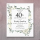 L'élégante invitation à la fête du 40e anniversaire présente un cadre botanique de fleurs blanches et de feuilles verts. Le nom de la personne d'anniversaire est écrit dans un texte traditionnel. Tout le texte peut être facilement édité pour créer juste le ton de fête approprié.