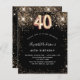 Une invitation moderne, élégante et glamour pour une fête de 40e anniversaire. Un arrière - plan noir décoré de faux parties scintillant. Le nom est écrit avec un script de style à la main de couleur dorée moderne. Personnalisez et ajoutez les détails de votre fête. Le numéro 40 est écrit avec une police de style ballon, script.