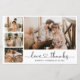 Budget, Élégant, minimaliste Main noire et blanche Écrite Grille de Mariage de script 4 Photo Collage Carte de remerciements. Modèle de carte mariage élégant avec quatre (4) photos à l'avant et une photo à l'arrière. Avec le texte "Amour et merci" dans une courbe lettrée typographie écriture coeur swash police. Personnalisez votre nom et merci message. Si vous avez besoin d'aide ou de l'article correspondant, s'il vous plaît contactez-moi!