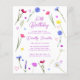 Des fleurs sauvages de printemps colorés entourent les détails de votre fête d'anniversaire. Moderne, tendance et féminin.