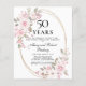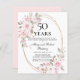 Elégant 50e anniversaire mariage modèle d'invitation dispose d'un cadre doré et deux arrangements de roses roses roses. Tout le texte est modifiable.