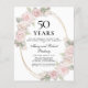 Elégant 50e anniversaire mariage modèle d'invitation dispose d'un cadre doré et deux arrangements de roses roses roses. Tout le texte est modifiable.