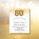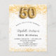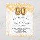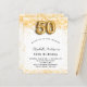 Pour une soirée élégante de 50ème anniversaire. Un arrière - plan blanc chic. Décoré de parties scintillant en faux or, brille. Personnalisez et ajoutez un nom, un âge et des détails de la fête. Le nom est écrit avec un script de style écrit à la main. Numéro 50 avec police de style ballon.