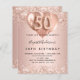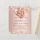 Pour un 50ème anniversaire élégant. Un arrière - plan rose à l'apparence métallique. Décoré d'or rose, de faux glitte rose, de mousseux et de ballons. Personnalisez et ajoutez un nom, ainsi que les détails du parti. Le nom est écrit avec un script de style écrit à la main, numéro 50 avec des polices de style ballon.