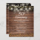 Doté de lampes à cordes et de délicats coeurs d'amour dorés confettis sur un arrière - plan en bois rustique. Personnalisez avec vos cinquante ans d'or d'information spéciale en lettres chic. Conçu par Thisisnotme©