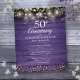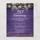 Doté de lampes à cordes et de délicats coeurs d'amour dorés confettis sur un arrière - plan rustique en bois violet. Personnalisez avec vos cinquante ans d'or d'information spéciale en lettres chic. Conçu par Thisisnotme©