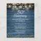 Doté de lampes à cordes et de délicats coeurs d'amour dorés confettis sur un arrière - plan en bois rustique. Personnalisez avec vos cinquante ans d'or d'information spéciale en lettres chic. Conçu par Thisisnotme©