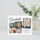 Invitation moderne pour la remise des diplômes avec un collage photo de 5 images éparpillées dans des cadres noirs, "Graduate" dans un script élégant, le nom de la grade dans la typographie serif classique, leur année d'école et de classe en lettres simples, et vos détails de fête personnalisée sur le dos. Ce papier semi-brillant budgétaire est similaire en poids au papier photo. Une version plus grande de 5x7 traditionnelle carte stock est également disponible (message nous pour le lien).