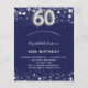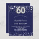 Une invitation moderne, élégante et glamour pour un 60ème anniversaire. Un arrière - plan bleu marine, décoré de faux étoiles argentées. Personnalisez et ajoutez votre nom et les détails de votre fête. Le numéro 60 est écrit avec une police de style ballon.
