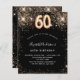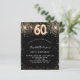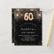 Une invitation moderne, élégante et glamour pour un 60ème anniversaire. Un arrière - plan noir décoré de faux parties scintillant. Le nom est écrit avec un script de style à la main de couleur dorée moderne. Personnalisez et ajoutez les détails de votre fête. Le numéro 60 est écrit avec une police de style ballon, script.
