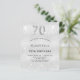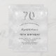 Une invitation moderne, élégante et glamour pour une fête de 70e anniversaire. Un arrière - plan faux argenté, décoré de poussière de parties scintillant. Personnalisez et ajoutez votre nom et les détails de votre fête. Le numéro 70 est écrit avec une police de style ballon, script.