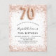 Pour un 70ème anniversaire élégant. Un arrière - plan blanc. Décoré d'or rose, de faux parties scintillant rose, brille. Personnalisez et ajoutez un nom, ainsi que les détails du parti. Le nom est écrit avec un script de style écrit à la main, numéro 70 avec des polices de style ballon.