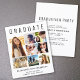 Faire-part moderne de graduation et invitation de fête avec "GRADUATE" en gros caractères, un collage de sept photos et leur nom, année de classe et école en simple typographie. Au verso, ajoutez les détails de la fête de remise de diplômes.