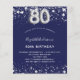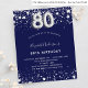 Une invitation moderne, élégante et glamour pour une fête de 80e anniversaire. Un arrière - plan bleu marine, décoré de faux étoiles argentées. Personnalisez et ajoutez votre nom et les détails de votre fête. Le numéro 80 est écrit avec une police de style ballon.