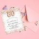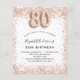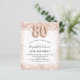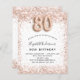 Pour un 80ème anniversaire élégant. Un arrière - plan blanc. Décoré d'or rose, de faux parties scintillant rose, brille. Personnalisez et ajoutez un nom, ainsi que les détails du parti. Le nom est écrit avec un script de style écrit à la main, numéro 80 avec des polices de style ballon.