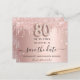 Une petite fille et tendance Enregistrer la carte Date pour une fête de 80e anniversaire. arrière - plan rose à dégradé d'or décoré avec de l'or rose et des gouttes de parties scintillant faux argent. Personnalisez et ajoutez une date et un nom/texte. Le texte : Save the Date est écrit avec un grand script de style à la main tendance avec des swashes. Numéro 80 avec une police de style ballon.