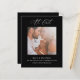 Budget À Dernière Calligraphie Photo Fiançailles Faire-part Noir. Un prix économique PETIT 4,5 po x 5,6 po alternatif. Disponible dans un STOCK SEMI-GLOSS 110 lb CARD qui est l'option par défaut (plus épais pour les invitations), OU un STOCK SATIN FINISH 80 lb THINNER PAPER (idéal pour les boîtiers). Un design moderne pour annoncer vos nouvelles passionnantes, avec élégant script set en blanc pour At Dernier au-dessus de votre photo qui est en format carré et le reste du texte que vous pouvez facilement personnaliser. Choisissez une photo romantique de vous deux et remplacez l'exemple de photo dans l'espace réservé du modèle par celui-ci. Vous pouvez également changer l'arrière - plan blanc à l'avant et à l'arrière, via l'option Personnaliser supplémentaire si vous le souhaitez, ainsi que les couleurs du texte pour mieux correspondre à votre photo choisie.