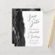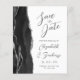 Le bord gauche de cet élégant mariage moderne, sauf la carte de date, est doté d'une bordure en aquarelle noire taillée avec une parties scintillant en faux argent. Le texte personnalisable combine écriture manuscrite grise au fusain, cuivre et polices italiques sur un arrière - plan blanc. L'envers présente un design d'agate noir et argent assorti.